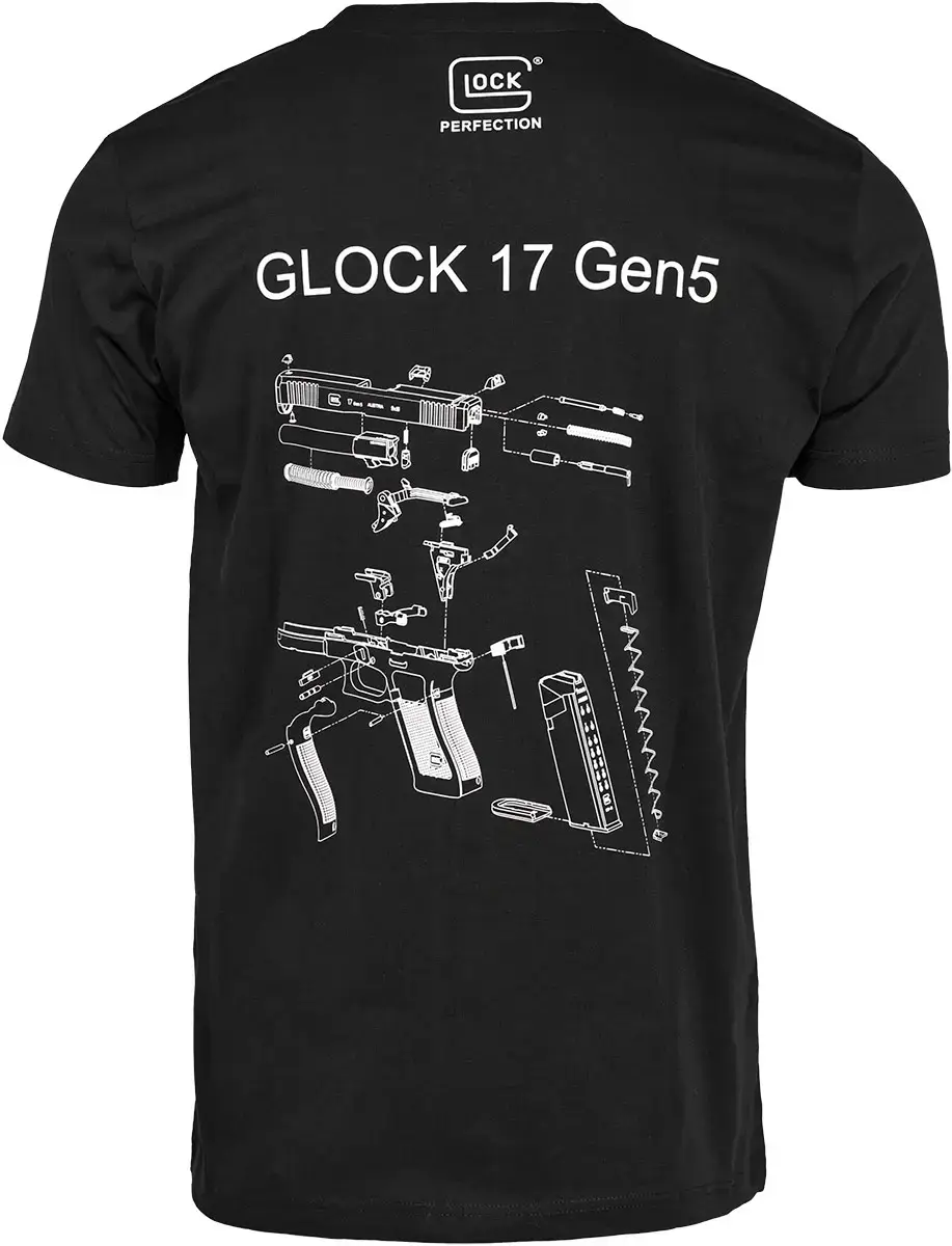 Glock Engineering TShirt Gen5 BT – це футболка від австрійського виробника короткоствольної вогнепальної зброї Glock. Позаду вона має принт зі схематичним зображенням пістолету GLOCK 17 Gen5, а попереду логотип легендарної компанії. Також знизу розташована світловідбивна бірка з зображенням пістолету. Футболка виготовлена зі 100% бавовни.