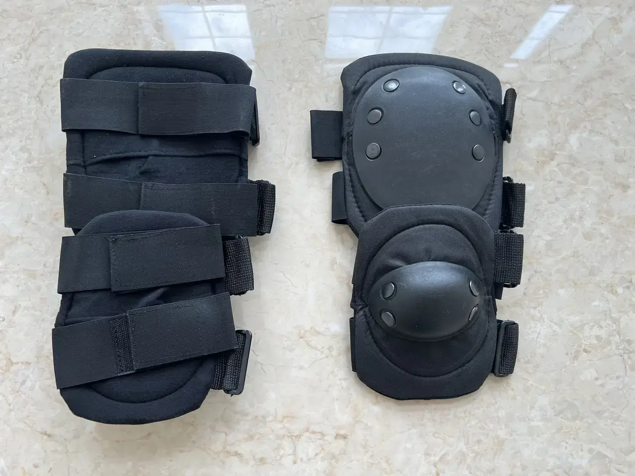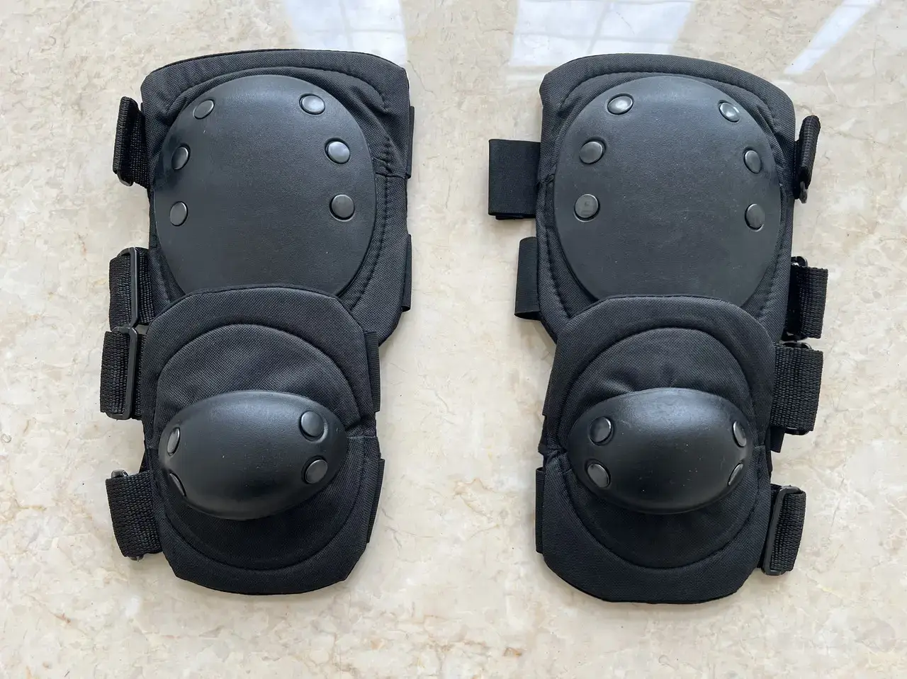 Призначені для захисту колінного та ліктьового суглоба від пошкоджень та травм. Зроблені з твердої пластмаси і готові врятувати вас від подушок і садин, які можливі при раптових і складних тактичних маневрах і падіннях. Кріпляться еластичними стрічками та застібками на липучці. Регулюються під будь-який розмір. Чашечки кріпляться до основного корпусу за допомогою широких клепок.